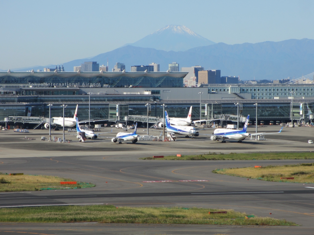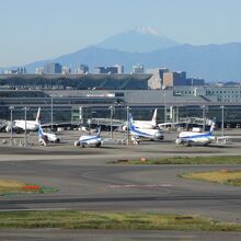 向かいの第二ターミナルごしの富士山がキレイに見える。