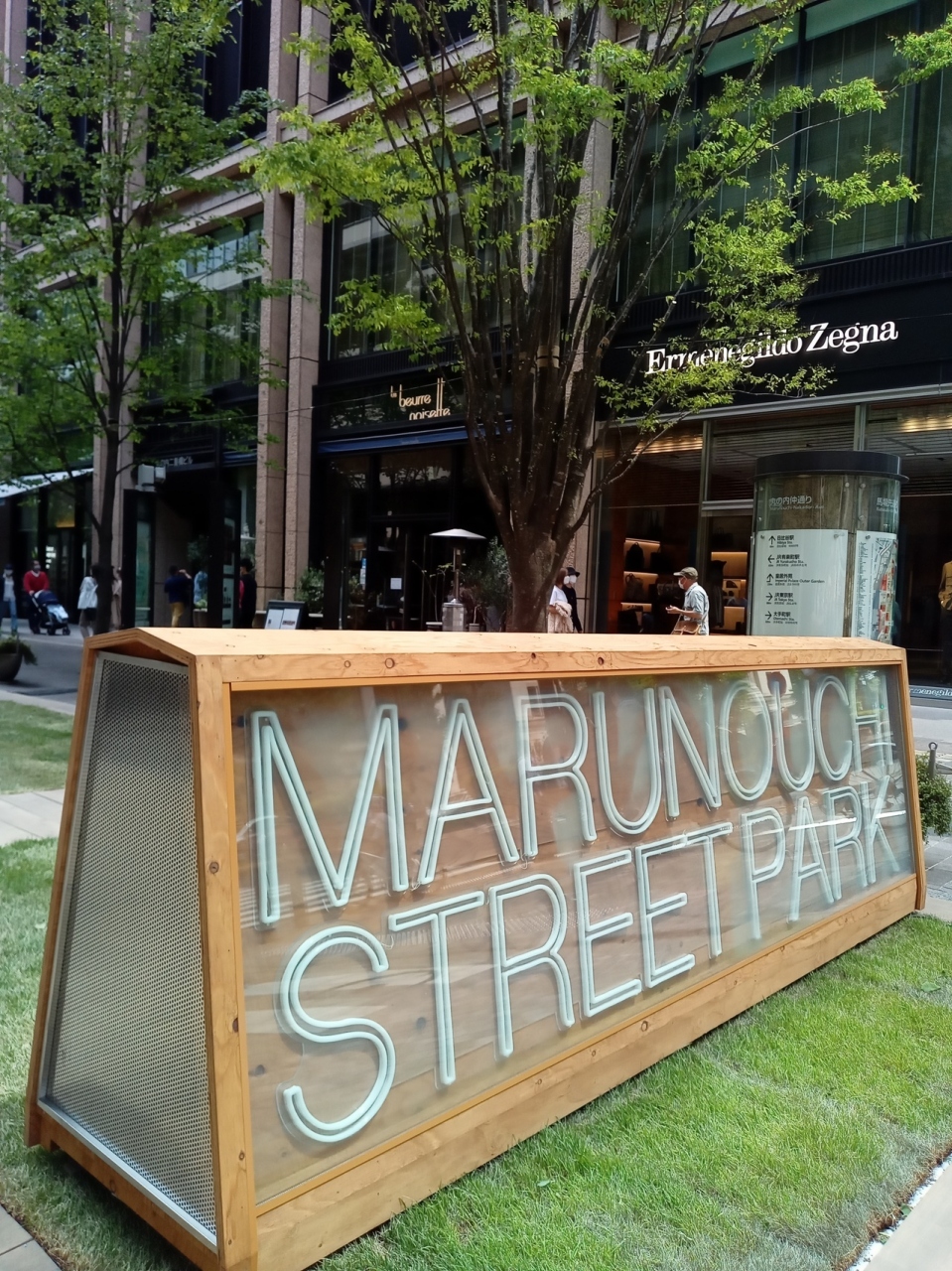 東京・丸の内にある『丸の内仲通り』を通り過ぎる際に、通りに「MARUNOUCHI STREET CAFE」が出来ていました。車両通行禁止となっているので、のびのびとテラス席にて珈琲をいただいたり、お子さんが遊べるようになっていました。
