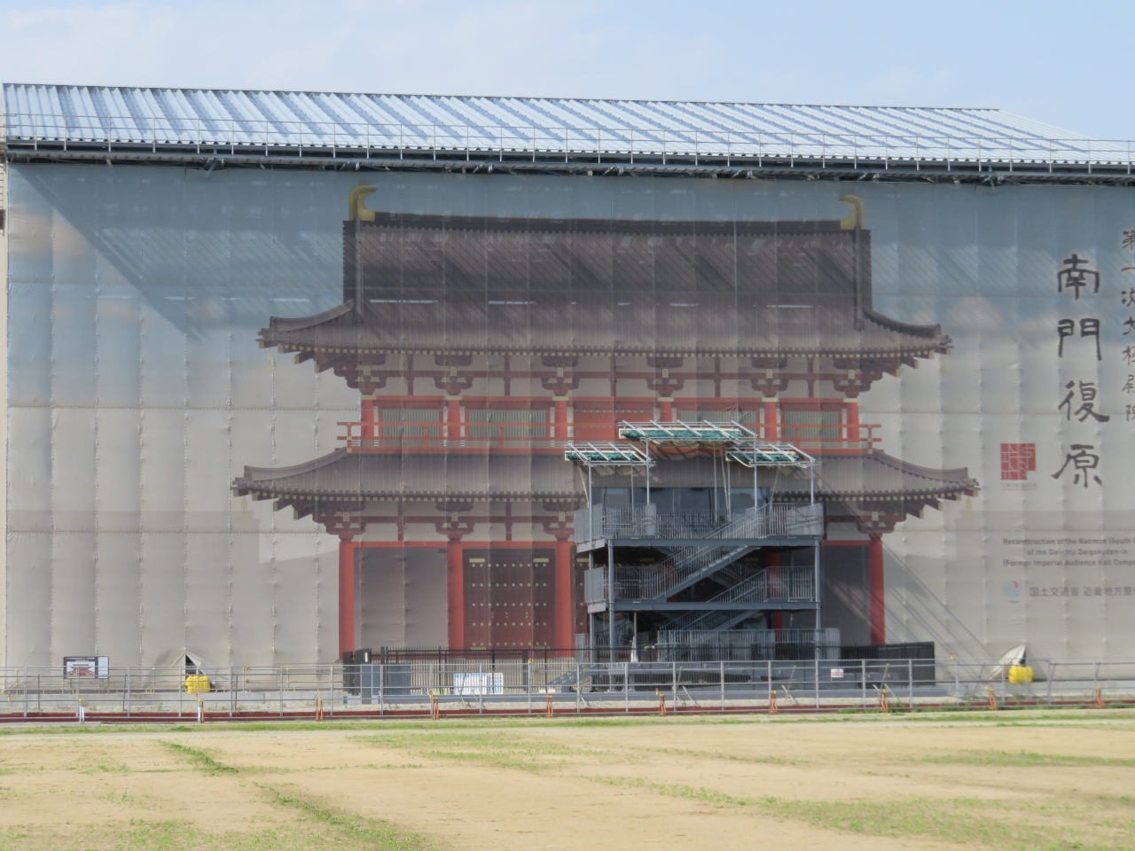 奈良は平城京の跡で平成の時代から国営平城京跡歴史公園として復原・整備されています。コロナの影響で施設は閉館状態でしたが、屋外は開放されていたので朱雀門や大極殿を楽しむことが出来ました。ただ、大極殿はずいぶん遠かったです。