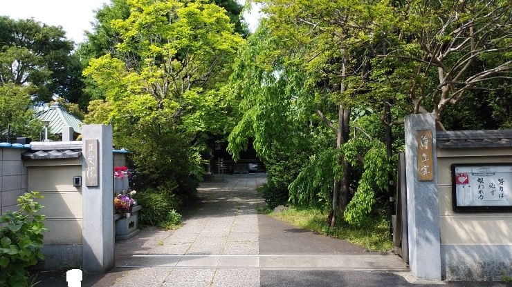 住宅街の中にある寺院で、参道がほそく伸びているのが特徴的。また、山門が独特の外観をしており、珍しいと感じた。木々の生い茂った境内は静かで落ち着いた雰囲気だった。