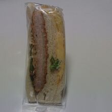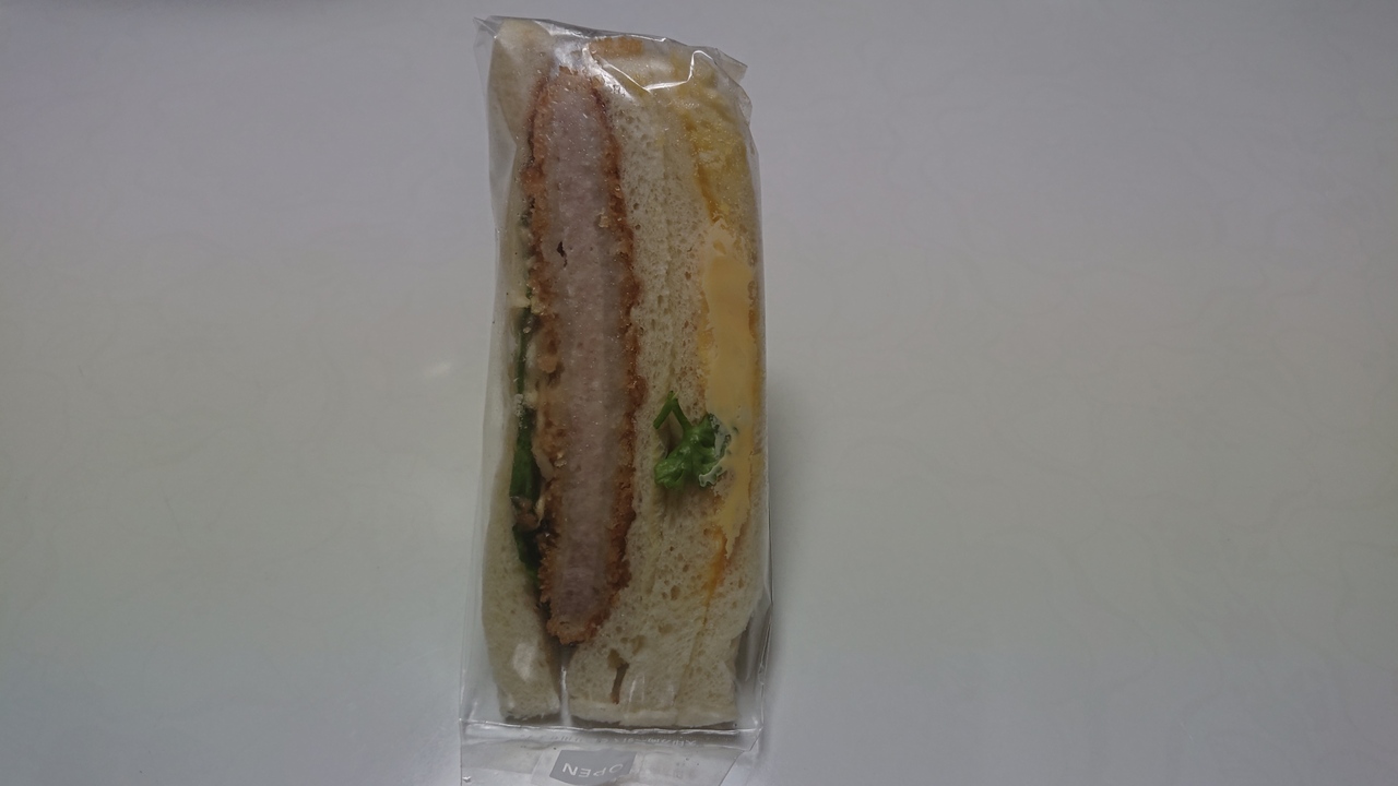 夜食用の品物を調達するために、日中に訪問しました。そして、サンドイッチ数点を購入しました。そのうち、トンカツと卵のサンドイッチは、シンプルながら、パンとトンカツのバランスが良く、また、卵サンドも食べやすく、おいしくいただけました。