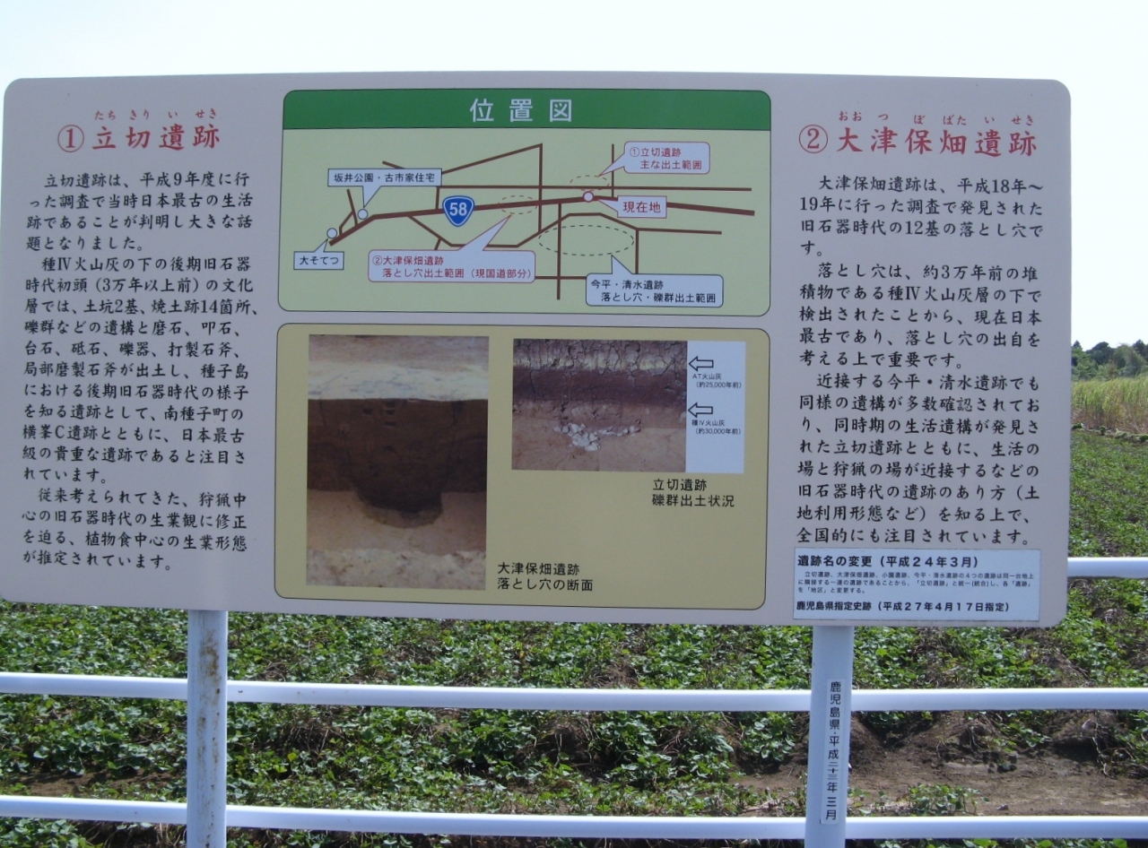 今から31000年ほど前の旧石器時代の生活跡。土杭・焼土・礫群・石器の4点セットが発掘された国内最古の生活跡で、定住して料理をしていた痕跡があることから、この時代の定説であった“狩りをしながら移動する生活”が見直されるかもという貴重な遺跡。