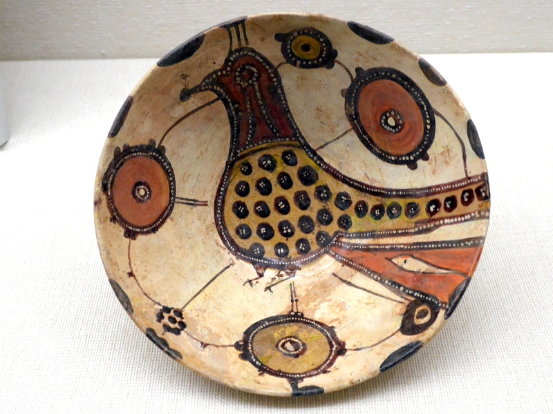 また、この古代オリエント博物館の収蔵品の中にエジプトやイランの美しいものがあった。エジプトの奉納碑にはデモティック(Demotic)と言われる民衆文字とヒエログリフ(hieroglyph)神聖文字が併記されている。オシリス神への供物の図が刻まれている。イランの花と鳥が描かれた見事な鉢、この紋様はササン朝ペルシア時代からの伝統らしい。