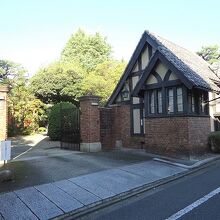 煉瓦の腰壁と、ハツリ目をつけた木部が典型的なハーフティンバー様式の美しい建物です。かつての別邸は取り壊され、修道院等になっていますが、この門衛所等だけが残っています。