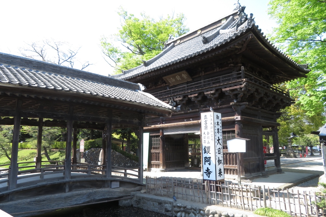 鑁阿寺は周囲をお堀に囲まれており、その南側正面に位置しているのが、こちらの山門です。山門の手前にお堀にかかる反橋という橋があり、その橋には立派な屋根がかけられています。よって山門をよく見るためには、敷地に入るか、横から見る必要があります。
