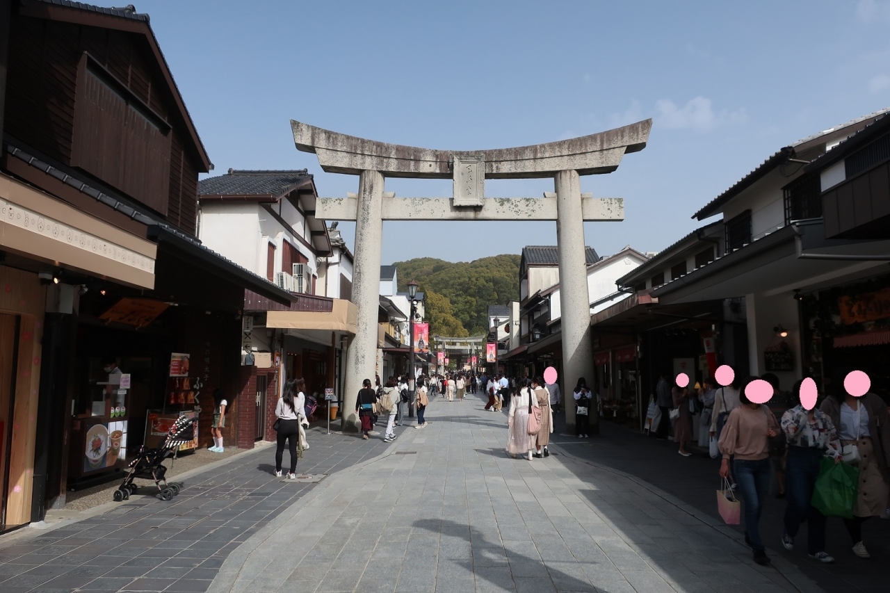 大宰府天満宮を訪れた時に歩きました。ちょうど西鉄太宰府駅辺りから賑わってきます。私は車で訪れましたが、大宰府天満宮大駐車場からでも近かったです。参道には、様々なお店が建ち並んでいました。梅ヶ枝餅が名物なので、色々なお店で売られていました。お店によっては行列ができています。どこにしようか悩むほどありますよ♪。比較的参拝客が多く、参道は賑わっていました。