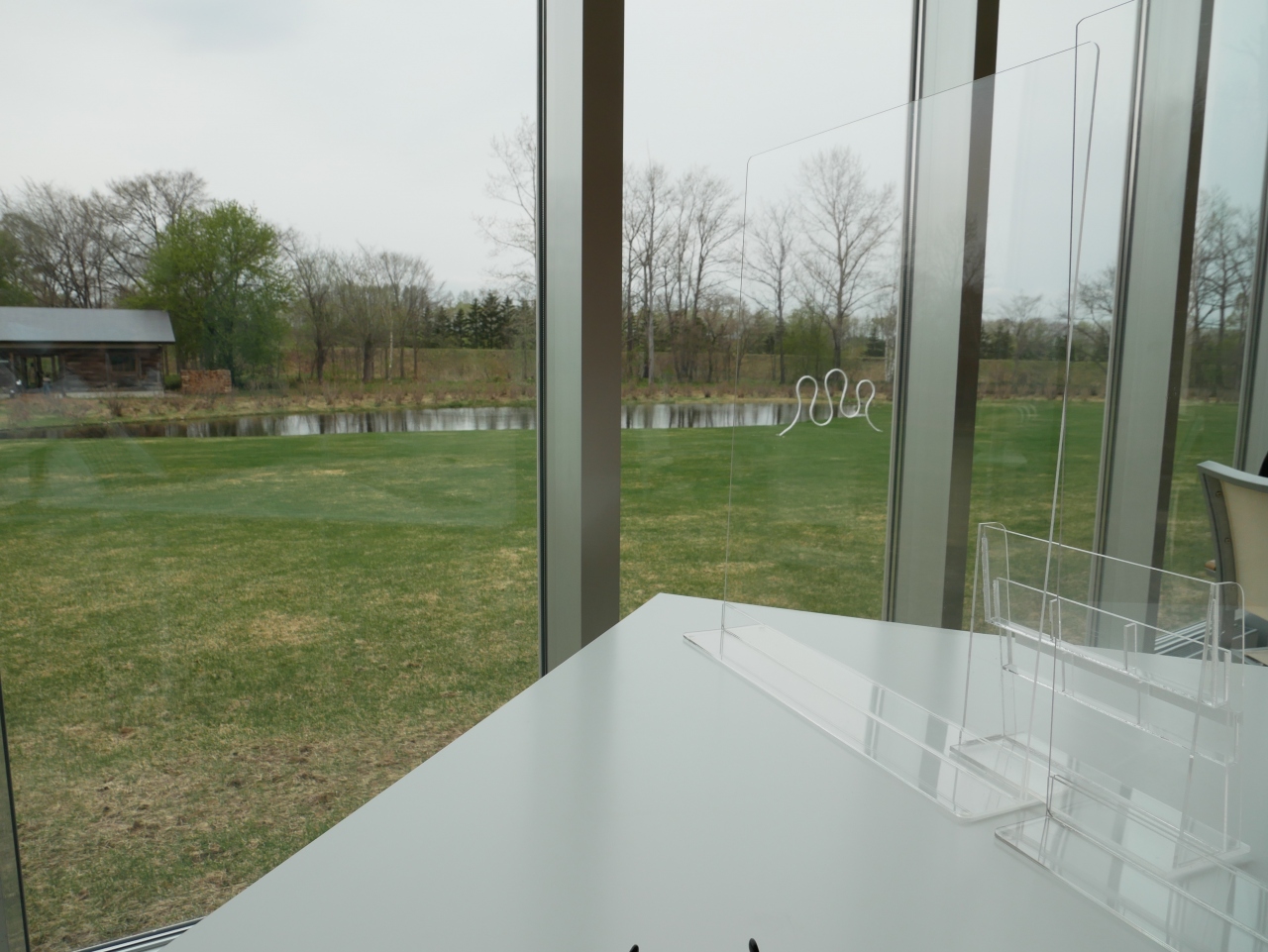 白くてきれいな外観の建物で、六花の森を眺めながら食事ができます。