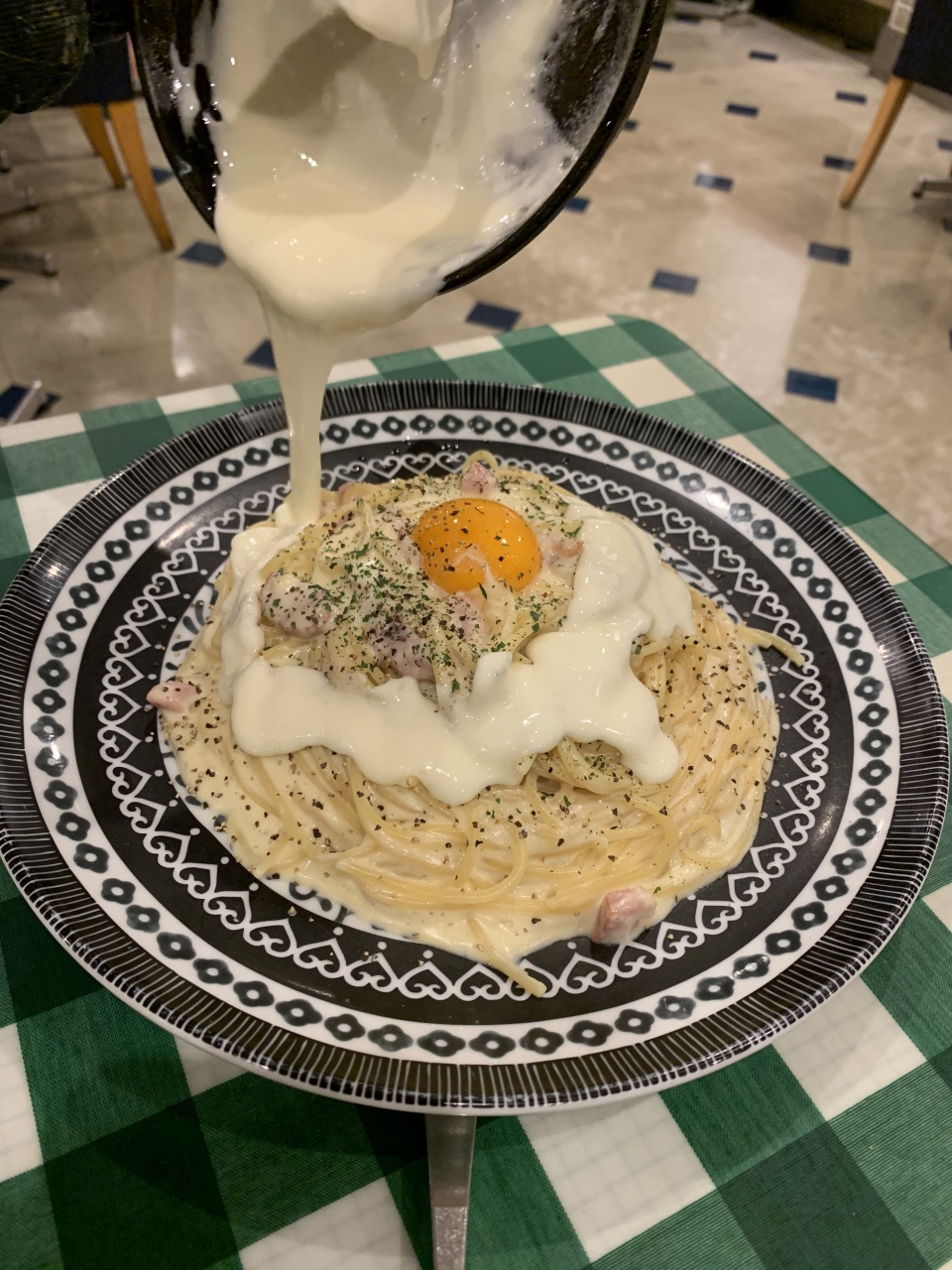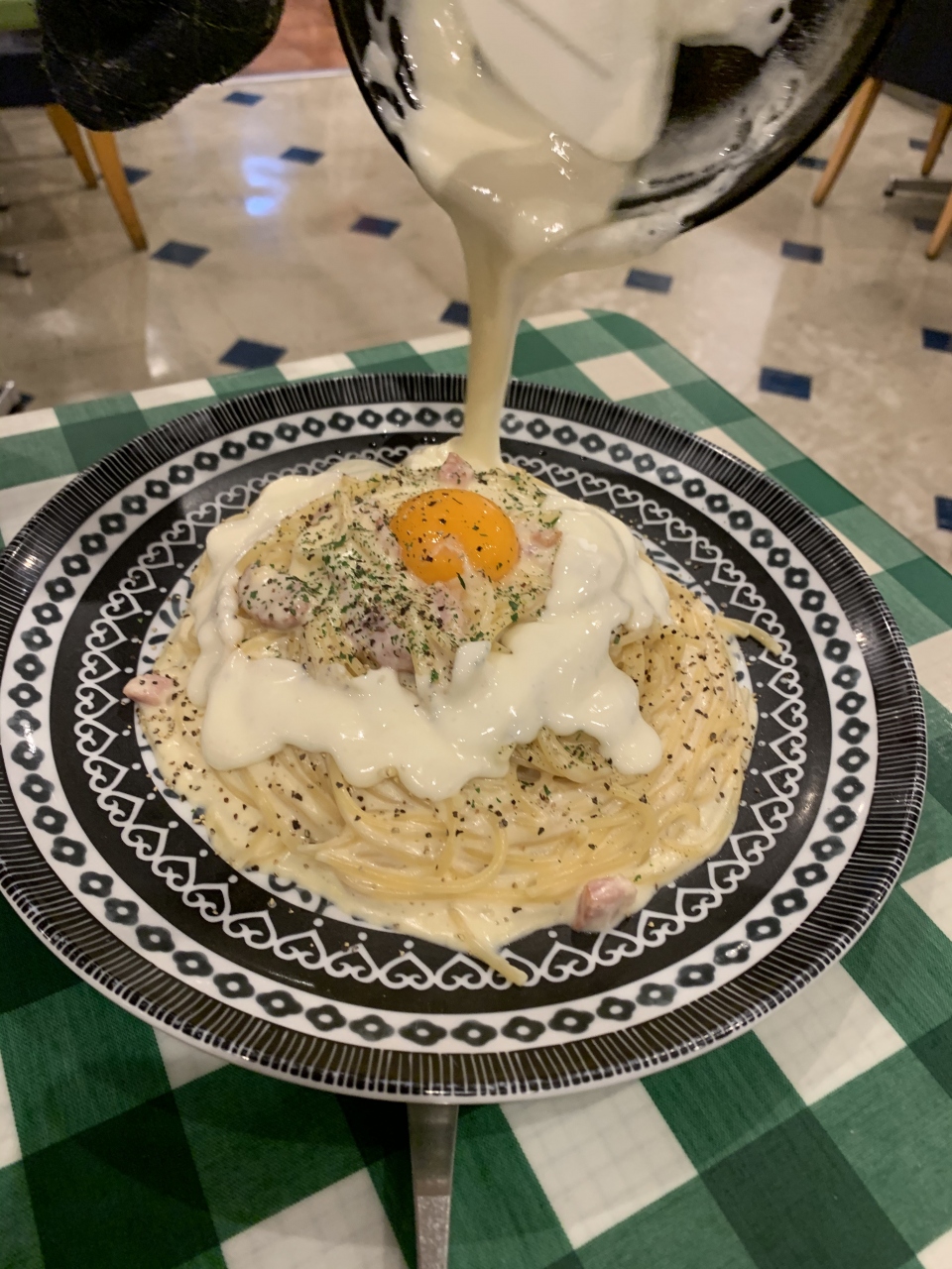 今 ハマっているパスタ「カルボナーラ フォンデュ」