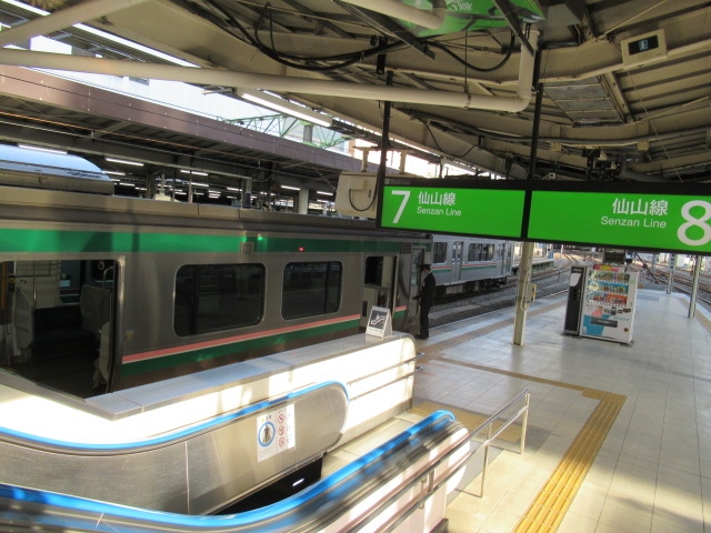 コロナの影響で海外旅行に行けないようになり昨年から日本100名城巡りをしています。この「JR仙山線」は仙台駅から羽前千歳駅なのですが仙台駅から山形駅までを利用しました。路線距離は58㎞で18駅でひと口で申し上げて「のどか風景100%」ですね。ぐんぐんと登って行きますが途中には標高440mにある面白山公園には桜が咲き東北に来たなって感じです。また途中には「山寺の和尚さんが・・・」で有名な山寺がありもう一度乗ってみたい気持ちになりました。全ドアが自動で開きコロナ対策も行われていました。