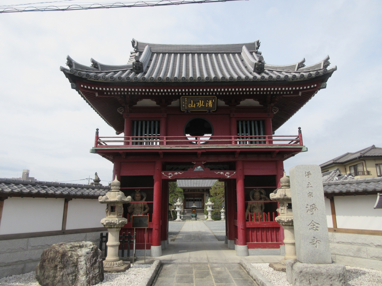JR桶川駅東口から桶川駅通り商店会を進み3分ほど、静かな住宅地に建つ浄土宗の寺院です。寺の象徴ともいえる朱色の仁王門は1701年に再建されたもので、二体の仁王像は1768年に開眼されたとのことです。仁王門の上にはかつて1741年に鋳造された梵鐘が置かれ、桶川宿中に時を知らせていたそうですが、戦災で焼失、現在は昭和になって鋳造されたも梵鐘が置かれています。境内には1315年から1550年までに作られた板石塔婆や、江戸時代に浄土宗の念仏を広めた僧侶の碑や桶川を治めていた方の供養塔、江戸時代後期の絵師で浄念寺に埋葬された狩野伊白の碑などが建っています。1546年開創の歴史ある寺で、歴史的遺産も多く残っているにもかかわらず、説明文が読みにくかったのが残念でした。歴史的に貴重なものばかりなので、ぜひ見やすい説明板を設置してほしいと感じました。