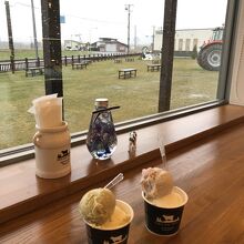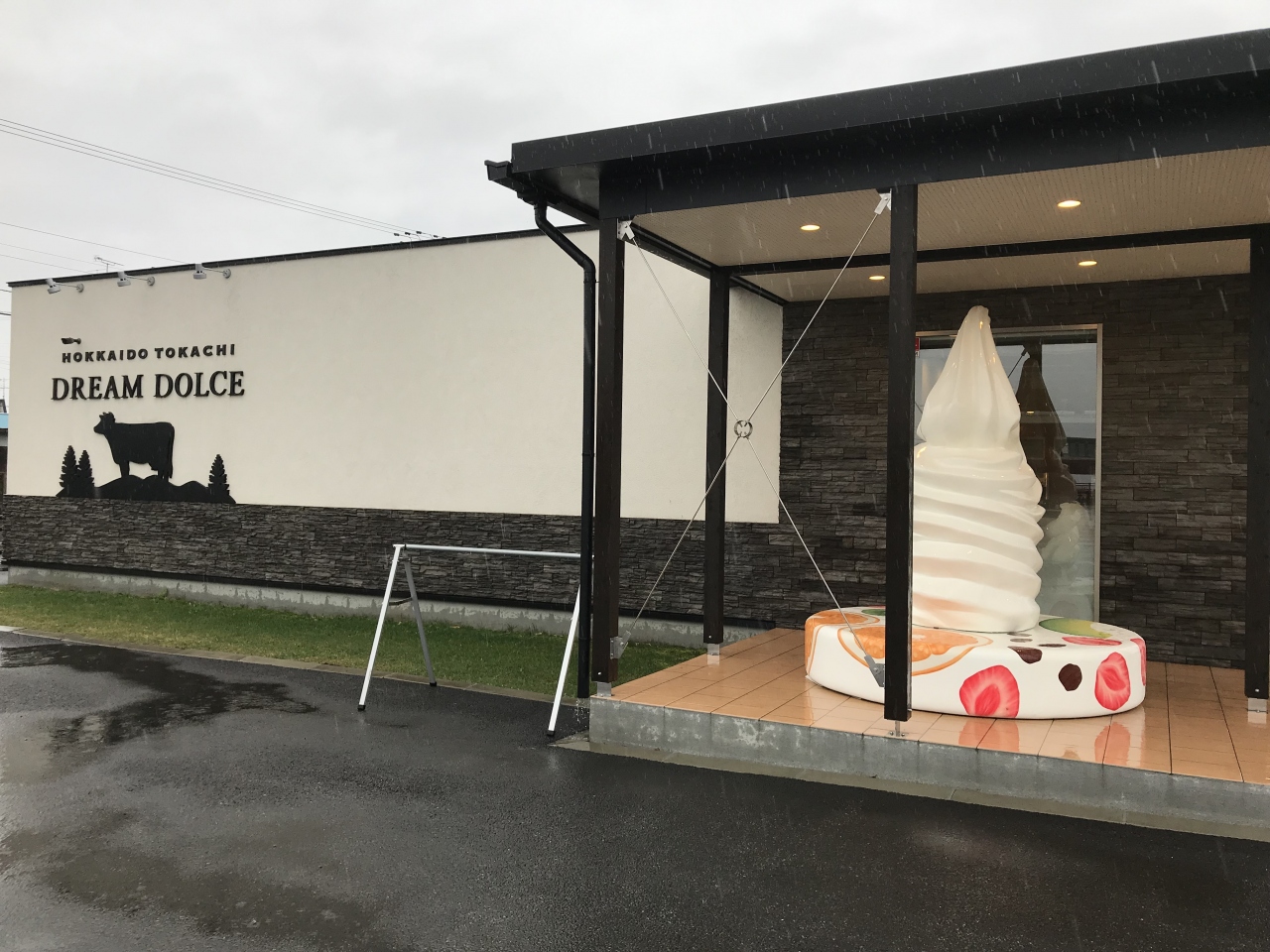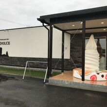 アイスクリームのほか、ケーキや焼き菓子も取り扱っていました。この日は生憎の雨でしたが、天気が良ければ、外のテラス席で食べるのも気持ちが良いと思いました。同じ敷地内には、「ドリームラッテ」という系列のカフェもあります。