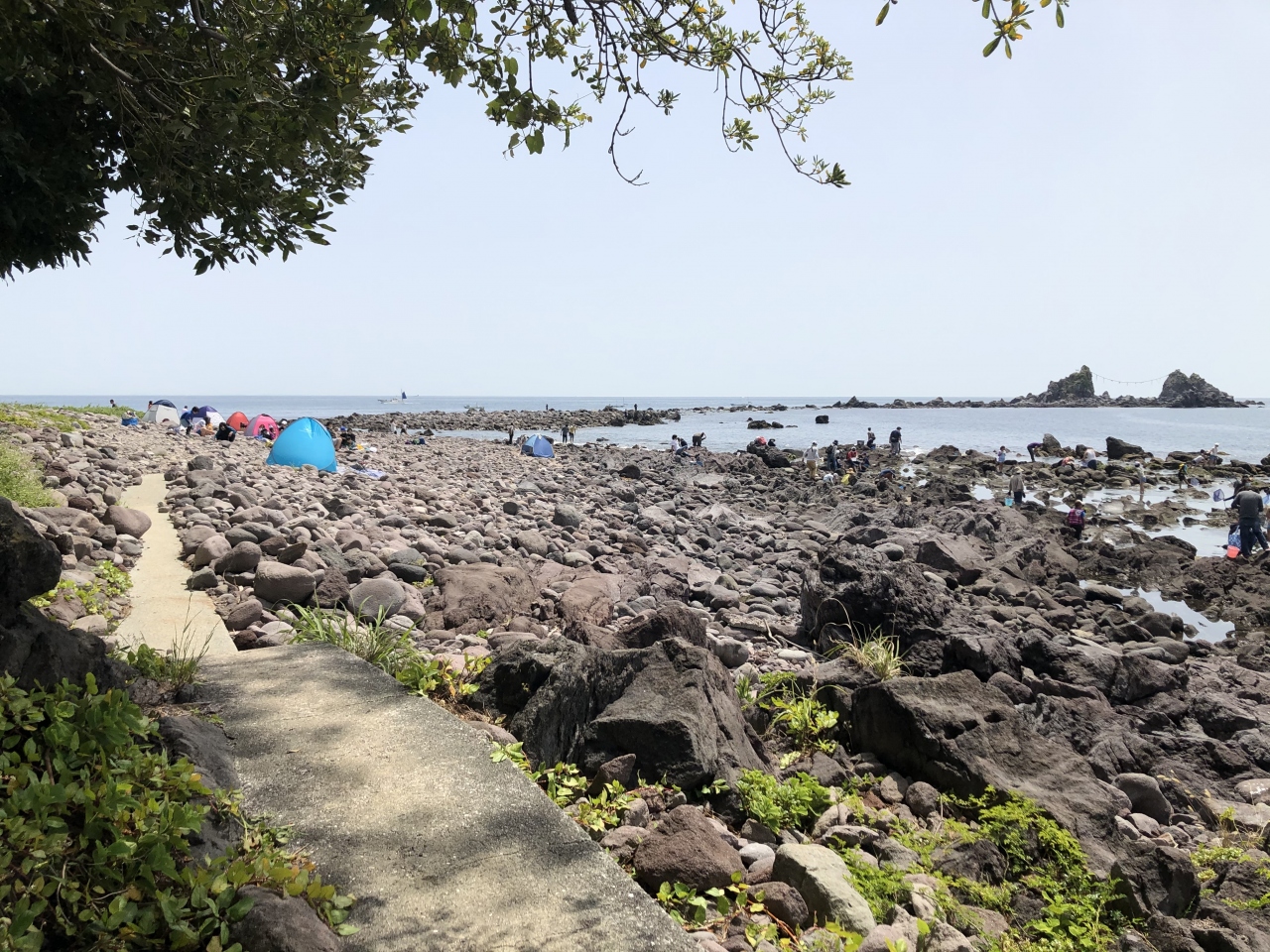 ケープ真鶴の前から番場浦駐車場までの約700m、海岸に沿った遊歩道が整備されています。岬の下にあるこのあたりの海岸は、岩場で歩きづらい場所ですが、遊歩道が整備されているおかげで、透き通るような海を間近に見ながら、海岸散歩を楽しめる絶好のスポットです。