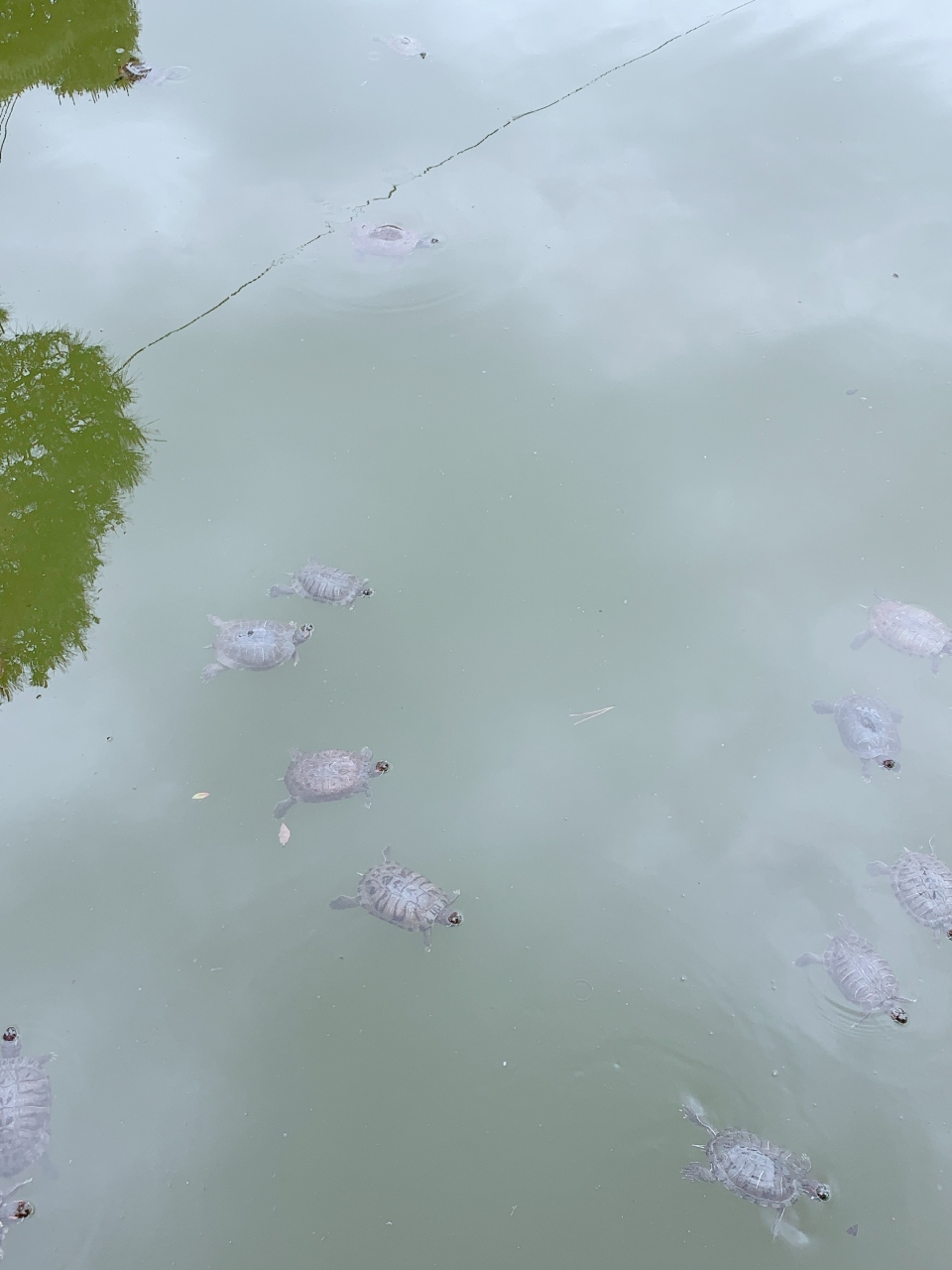 四天王寺にこんなに亀がいるなんて驚愕でした。池にびっしりと亀がいるんです。狭そうですが仲間がいて楽しそうですね。だから四天王寺は亀がモチーフなんですね。こんなにいることが本当にびっくりでした。石の上にもいます