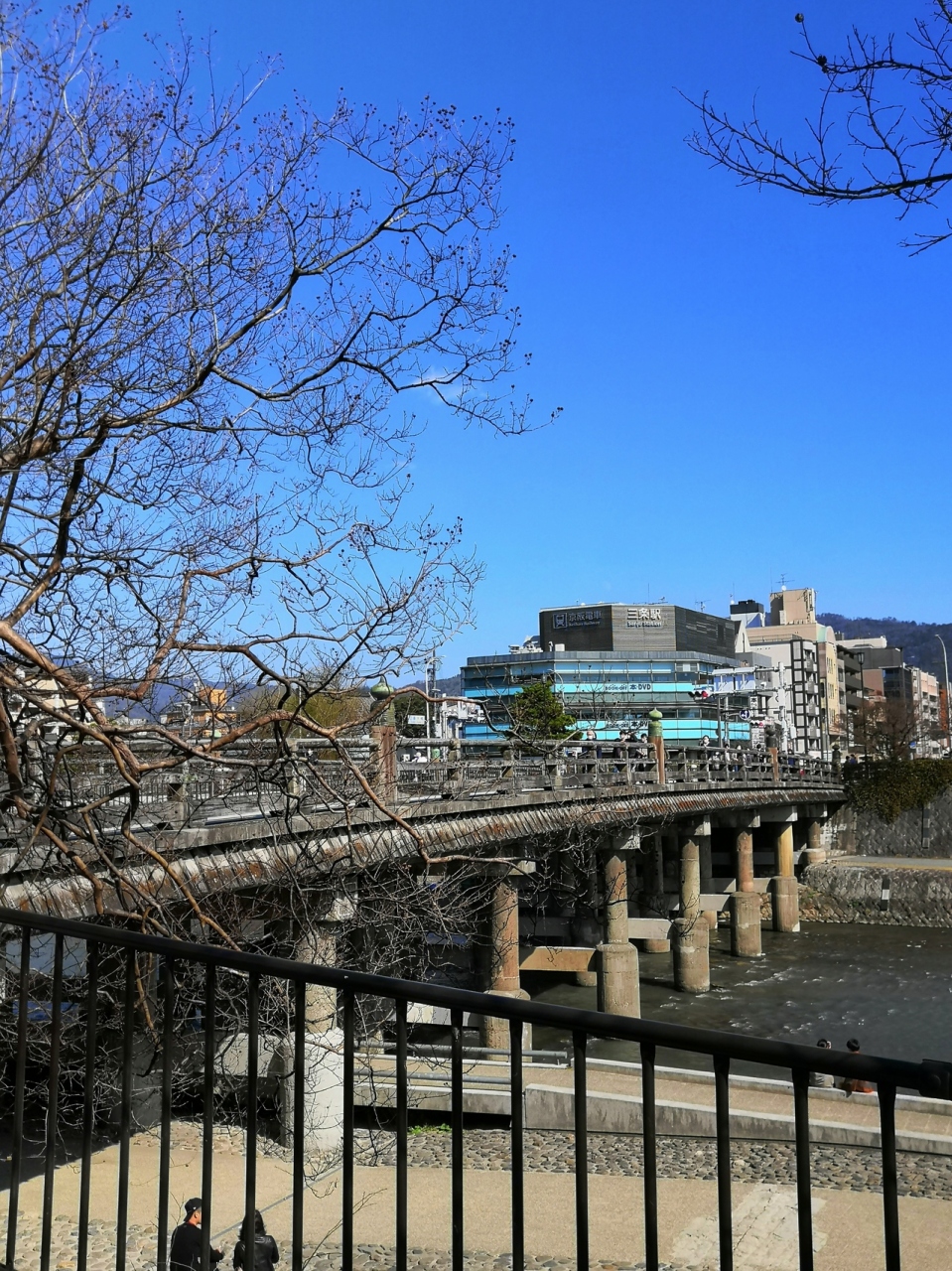 三条通の鴨川に架けられた橋で、東海道五十三次の西の起点ともなっています。橋やその周辺には東海道中膝栗毛の弥次郎兵衛と喜多八の像や、旅の安全を祈願しておかれた撫で石、池田屋騒動のときにつけられたという刀傷の跡がある擬宝珠もあるのでいろいろ見どころありました。