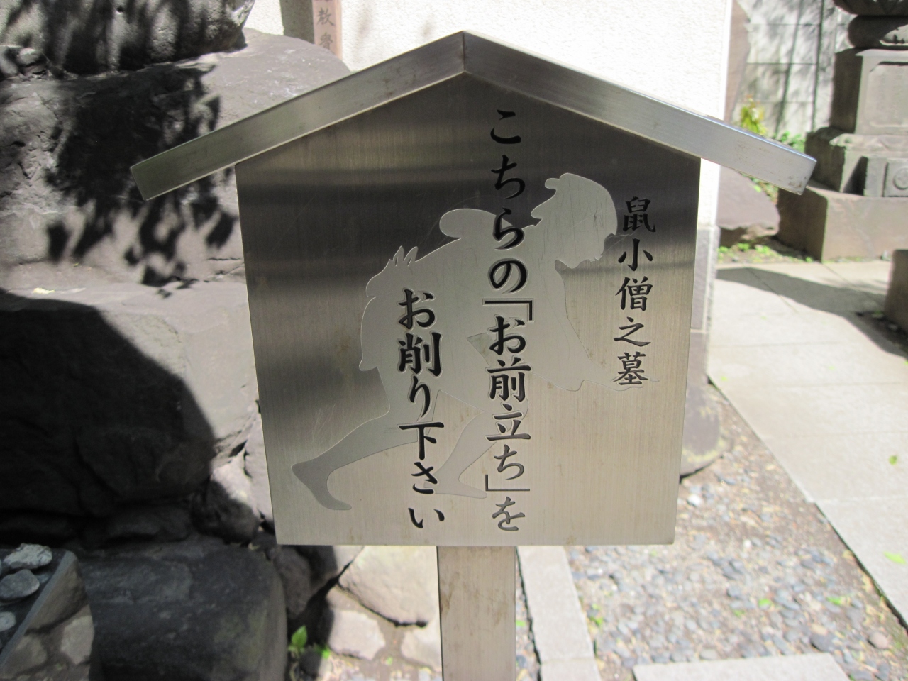鼠小僧次郎吉の名前は良く知っていましたが、どこまでが本当なのかわかりませんでした。その盗賊のお墓が回向院にあったので、実在したことを確認できました。墓のそばにある石を削ってもっていると、お金に困らないそうなので削ってみました。ご利益があることを祈りました。