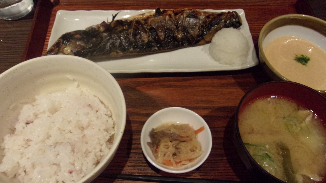サバは三枚に卸された半身のみで、そこそこ大きいがトロというほどの油は感じられない。炭火焼きで落ちてしまったか? それでも味は及第点。