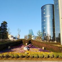 大きな噴水設備と花時計が特徴的な公園。立地的に昼時間帯は会社員などの休憩スポットとして最高な環境だと感じた。