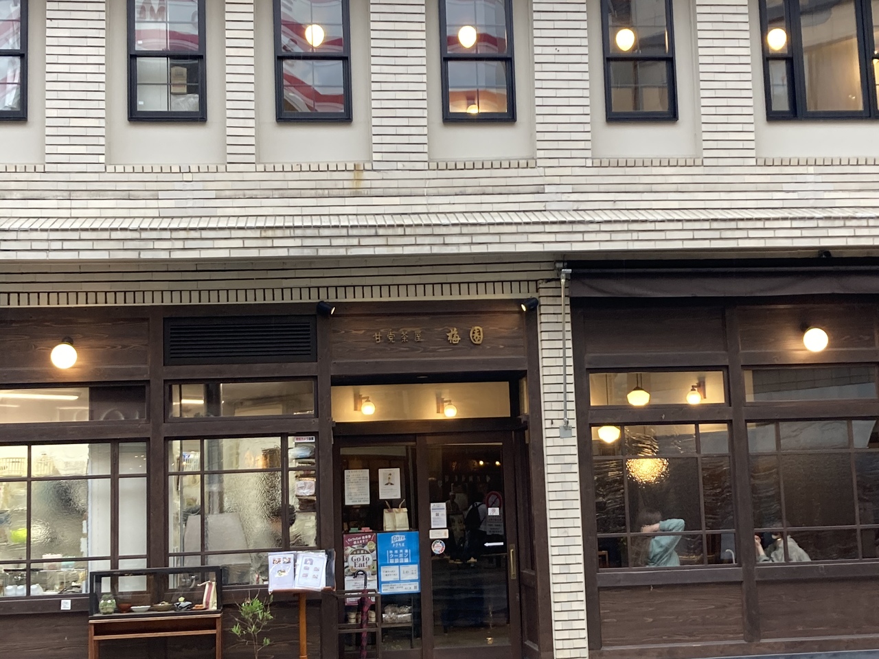 京都の河原町三条近くにある、和風カフェです。直ぐ近くに本店の甘味茶寮の梅園が有るのですが、この店は三条通りを西に行き寺町の角にある、本店より広くカフェになっています。雨の日に行ったのですが、窓から見る雨だれの景色も絵になる、レトロな内装で、時間を忘れてくつろげました。ただ行った時間が平日の夕方近くで混んでなかったのですが、人気の店なので昼間はこんなにゆっくり出来なかったかもしれないです。あんみつとコーヒーを頂き、少しの時間でも、日常と離れた空間でほっとした時間を過ごせました。ここは、みたらし団子が人気なので次は頂きたいと思いながら帰りました。駐車場所か自転車も店の前に置けないのですが、5分ほど歩いた所に市営の駐輪場もあって何とかなります。