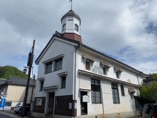 白壁の通りとして有名な、上下町の石見銀山街道沿いにこの建物がありました。教会と言うと西洋風の建物と言うイメージですが、その佇まいは、この街の白壁の通りにうまくマッチしており、とても自然な感じがします。残念ながら、内部を見学することはできなかったのですが、とても興味深い建物でした。