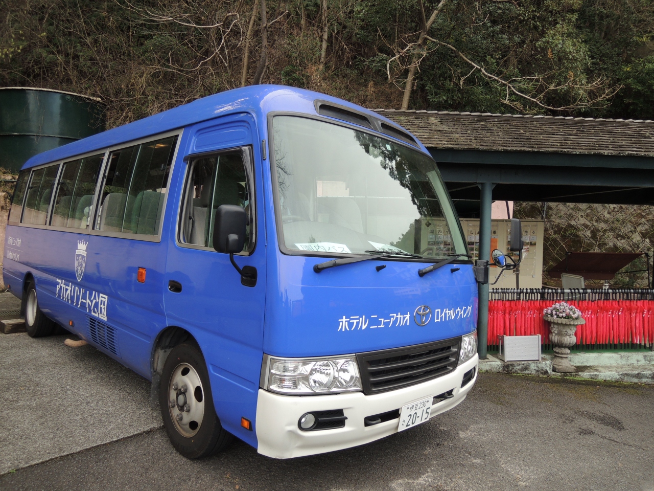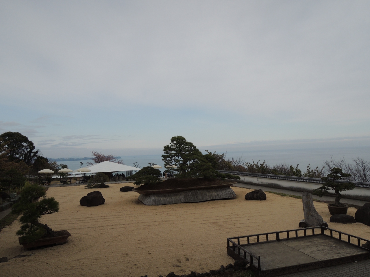 駐車場が無料の施設で、入園口でJAF割引のチケット購入。山の中腹まで専用のバスで3分ほどかかってガーデンへ。大きな盆栽風の日本庭園があり、松が見事です。花畑を降りすすむと、展望台とブランコがあり、若い人はブランコ待ちの列を作っています。さらに斜面には