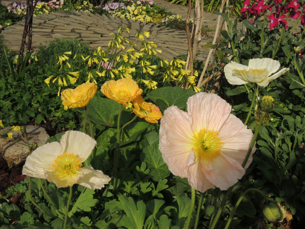 ハンモックあり、駿河湾に浮かぶ熱海城も見える絶景が素晴らしい。斜面には黄色い水仙や、散策路ではケシの花やクリスマスローズが咲いていました。見ごたえがあるガーデンでした。