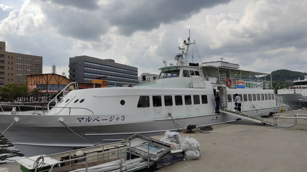 船内では軍艦島の解説映像等も流れていて十分満足できたクルーズでした。
