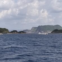 外海は時化ていて船も大揺れ。船の2階の2列目の席に座っていても波しぶきで服がびしょびしょになりましたが、これはこれでアトラクションのよう。