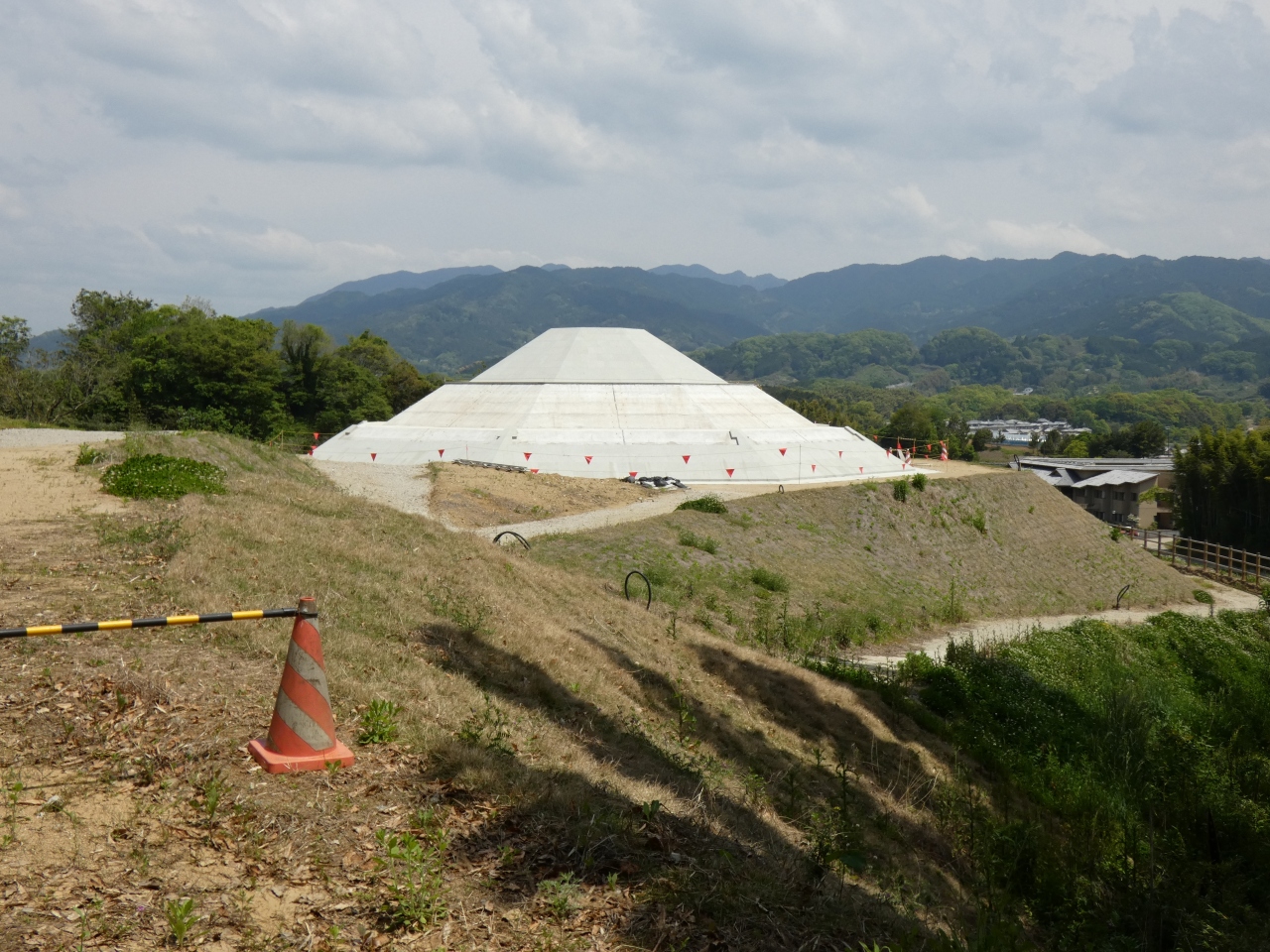 近鉄飛鳥駅の西側の貝吹山の中にある古墳で検査改修中で石室を見ることは出来ませんでした。形状は天皇陵の代表的な八角形で国の史跡に指定され、飛鳥時代の第35代の女帝・皇極天皇の陵と言われています。白いテントに覆われて実物を見れず残念でしたが飛鳥のキトラ古墳群を見渡せる地に位置しています。