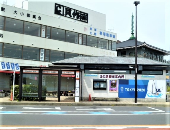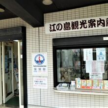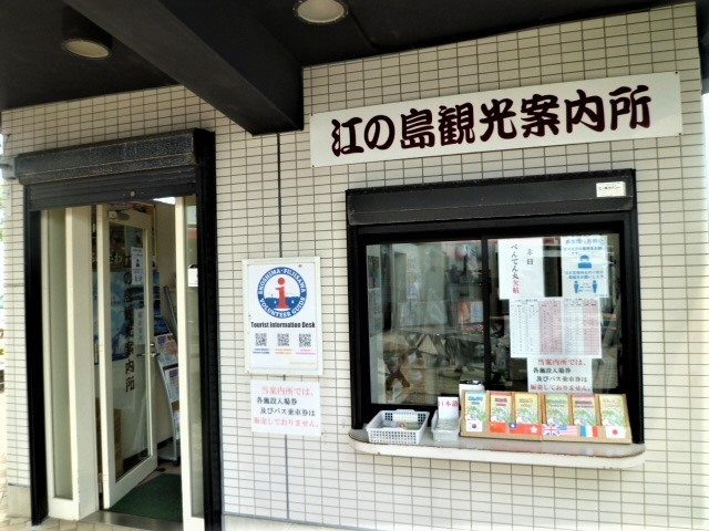 江の島本体にある「江の島観光案内所」です。鎌倉から車で来ると`藤沢市片瀬江の島観光案内所`or`藤沢市観光センター`ではなく、国道134号線から左折し江の島大橋を通過し直ぐにあります;便利な駐車場の前に、バス停の隣り! ここで江ノ島パンフレットをもらって(数ヶ国語も)、仲見世通りに向かいます(^^)