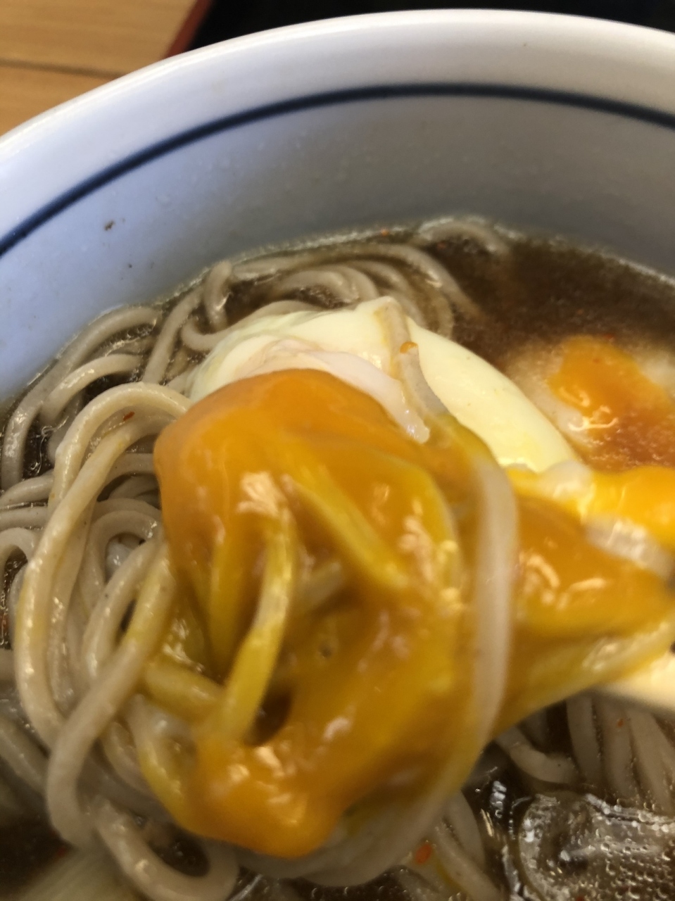 途中で温泉玉子を落として、ズズーッ…!