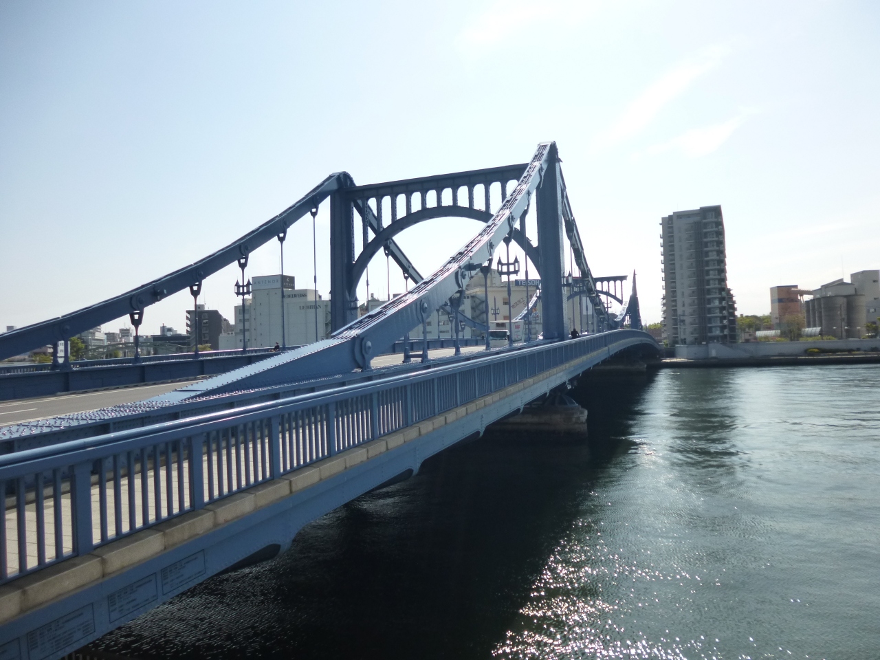 隅田川にかかる清澄橋は、日本橋の中洲町と深川の清住町の間に架けられてことからその名がついたようです。この鋼鉄橋が完成したのは、昭和3年で、関東大震災の復興の一つだそうです。当時の高いデザイン性と技術の高さが素人ながらもすごいなと思います。平成19年に国指定重要文化財になった、美しい自碇式吊橋です。