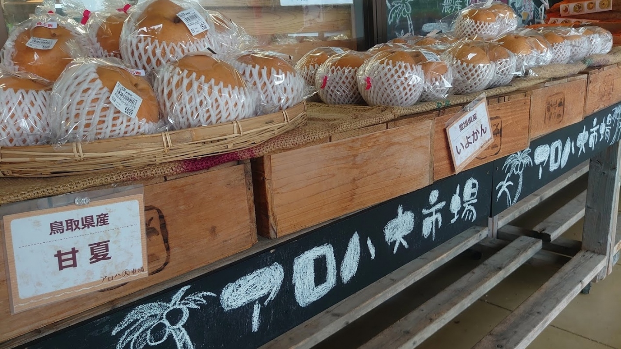 鳥取県中部に位置する温泉地の道の駅です。高台に立地しており東郷湖を望めます。店頭でのフルーツ販売コーナーはアロハ大市場と名付けられていて海外旅行気分(?)でした。猛者海老、岩ガキ、ベニズワイガニといった海産物の販売もあって魅力的でした。