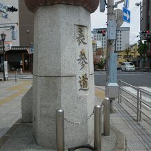 成田駅から成田山新勝寺へと続く参道で、駅前には「表参道」と書かれた、大きな石造りのモニュメントがあり、上には歌舞伎の演目「鎧獅子」の像がありました。駅周辺はあまりお店はありませんでしたが、成田山新勝寺に近づくにつれて、お土産屋さんなどのお店が増えている感じでした。平日だった事もあり、観光客がほとんどいないので、どのお店も店員さんが待ち構えているような感じでした。