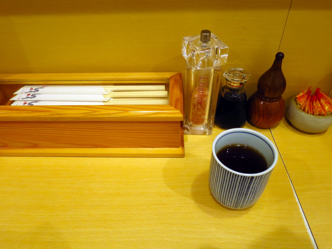 This diner is also open for both take-out and business, but the bento for take-out that were being made were placed in front of the counter seats. I guess it was an effective way of serving food in a small kitchen, but I didn't feel good about having the bento right in front of the customers putting on the counter.