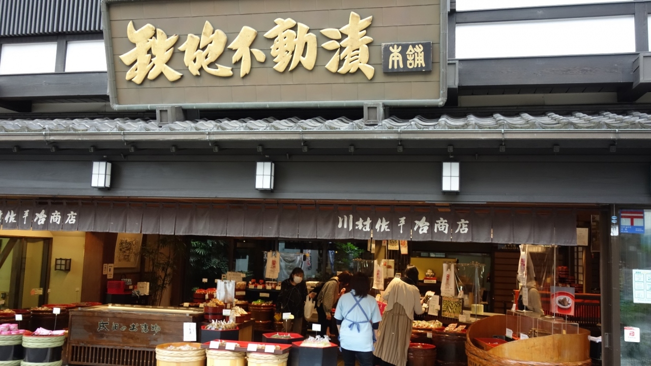 成田あたりのエリアを散策中こちらの場所を訪れました。成田山新勝寺の表参道に位置するお店で、鉄炮漬けや奈良漬けそれに味噌など販売している老舗です。地元産の材料を使っていることで知られていて特に鉄炮漬けは有名です。