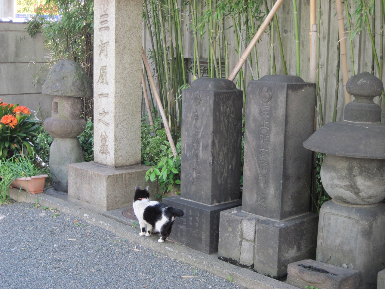 両国の回向院内を散歩していたら、猫の供養塔がありました。今や空前のペットブームで、生前は家族同様にかわいがっていたペットも、大切に供養しているのだと思いました。ほんとうに偶然ですが、すぐ脇を猫が一匹通り過ぎたので、何かご縁があるのかと驚きました。