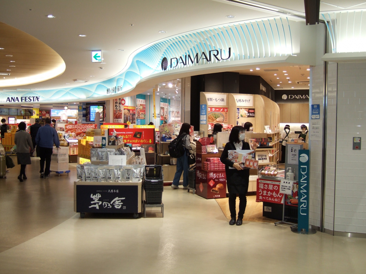 国内線ターミナルビルの2階、南側の保安検査場に近い場場所にあり、各メーカーの明太子から博多ラーメン、お菓子までそろっており、この一か所で博多土産を買いそろえることができ、とても便利です。