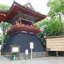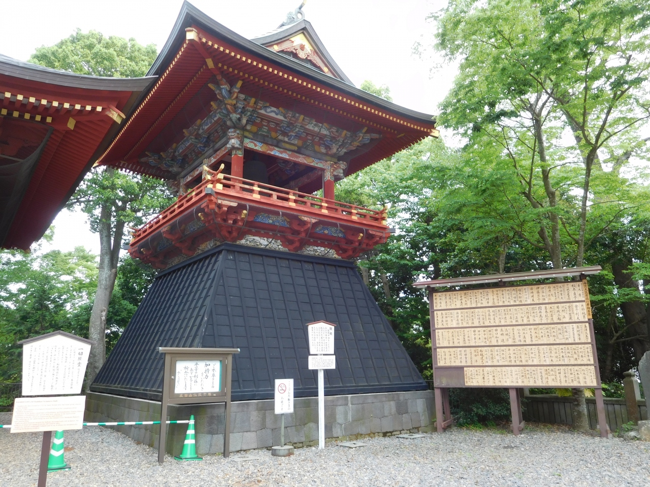 成田山新勝寺での参拝を終え、三重塔の裏側を通り、帰路と書かれた階段を下りる手前に「鐘楼」がありました。黒色の土台に、カラフルな色使いで描かれていて、1701年建立のようでした。とてもすっきりとした印象の鐘楼でした。