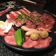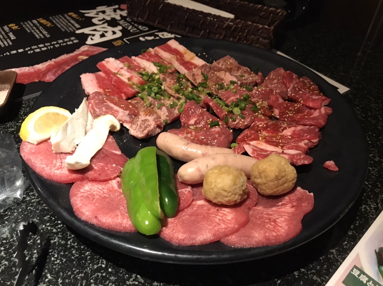 友人と焼肉を食べに行きました。ファミリーセットをもらい、ほかに塩キャベツやキムチも注文。ドリンクは元々フリーです。ここのお肉は和牛を使用しているとかで、お値段は安いのに、とても美味しかったです。最後はデザートのプリンで締めました。アイスクリームとさつま芋の載ったプリンで、大変満足。