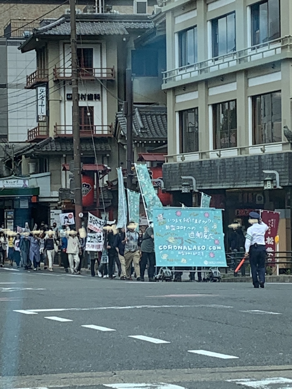 を掲げて 歩いていました。