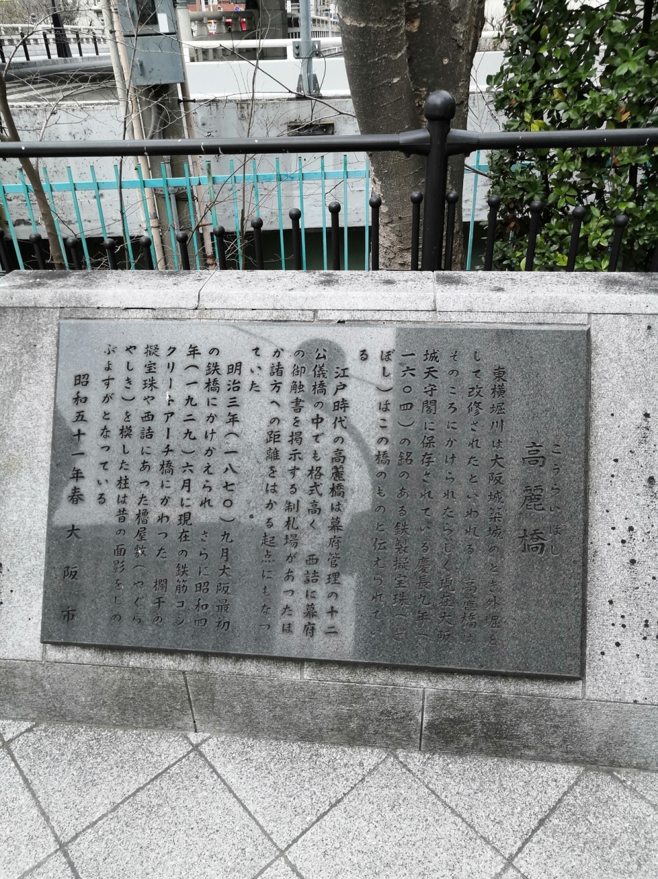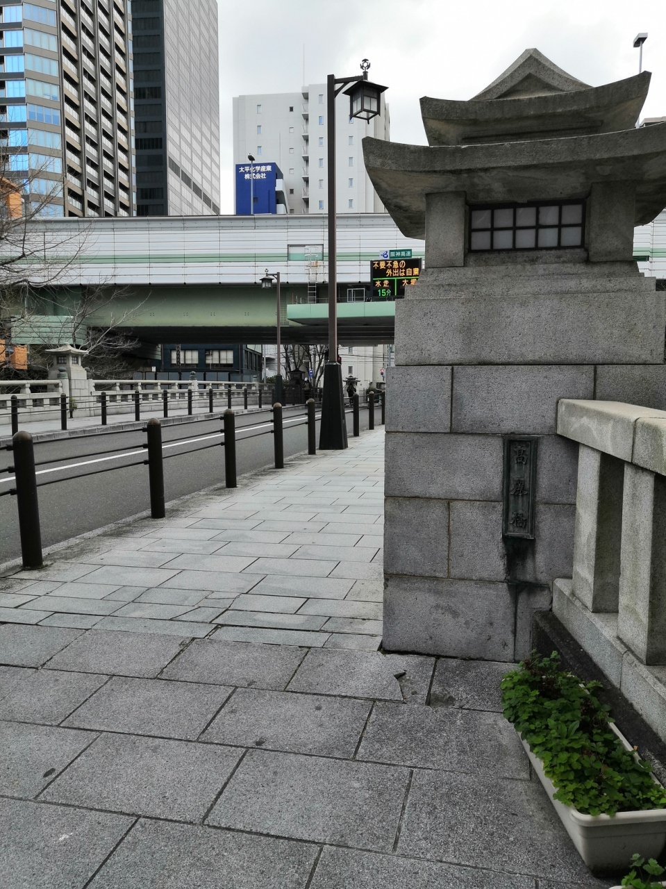 東横堀川に架かる橋の一つです。大阪で最初の鉄橋だったそうです。今は特に特徴のないエリアですが、かつては運河が重要だということもあって高麗橋周辺は豪商の店舗が立ち並びんで日本第一の商都・大坂の経済の中心だったそうで、道路の起点を示す碑も橋の袂あるので一緒に見学するといいです。