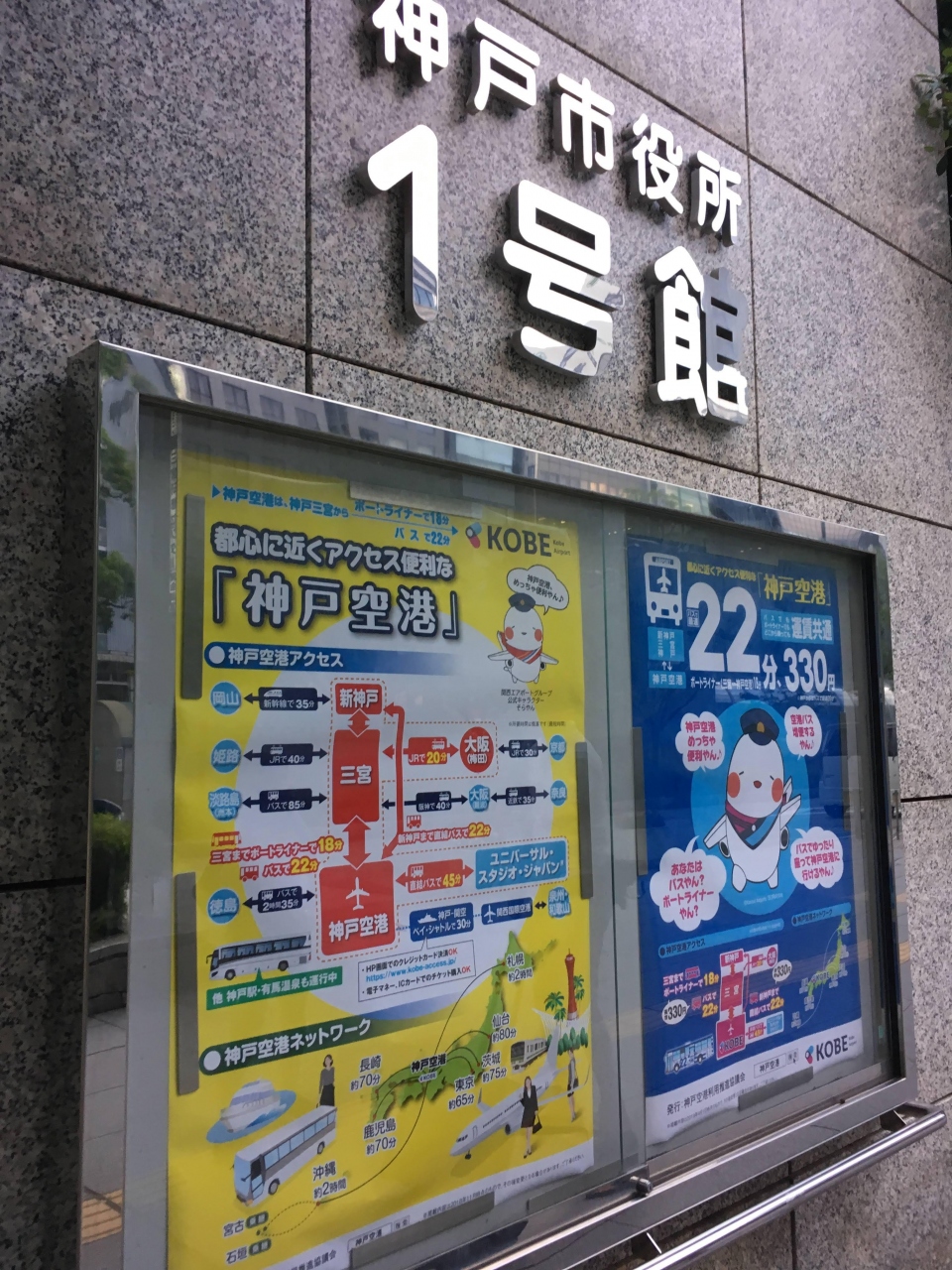 神戸市役所本庁舎は、新神戸から三宮にかけて通るフラワーロードに面していて、駅からも近いですし、この建物自身が神戸市内でも有数の高さを誇ります。ただ、近年は周辺に高層のビルやマンションが増えているので、やや目立ちにくくなりました。とはいえ、無料で入れる1号館24階の展望ロビーから見る景色はなかなかのものです。