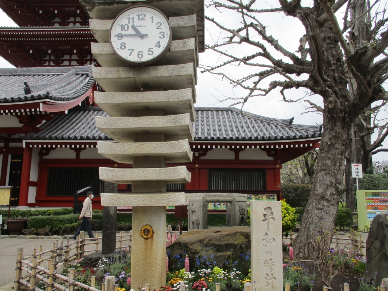 浅草寺 宝蔵門の左横あたりにあります。石積みの多重塔のようなデザインでユニークです。時計自体はごく普通だと思いました。時間がよくわかるのでありがたいです。この時計は東京大空襲で亡くなられた方を慰霊し平和を願うために設置されたそうです。