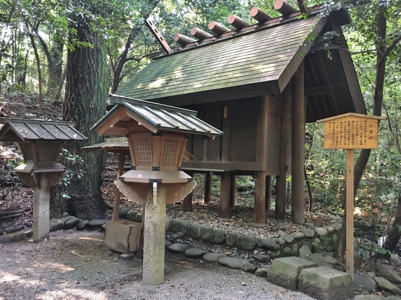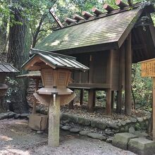 こころの小径に入り、御田神社を通って進むとあります。祭神は水をつかさどる神様である罔象女神を祀っています。社殿の奥に水が湧いていることから、「お清水(しみず)さま」と呼ばれ、眼や美肌に効くという信仰があります。また、中央の岩に柄杓で水を3回かけると願いが叶うという伝説もあります。こころの小径は静かでしたが、ここは人気の様で参拝客が次々と来ていました。