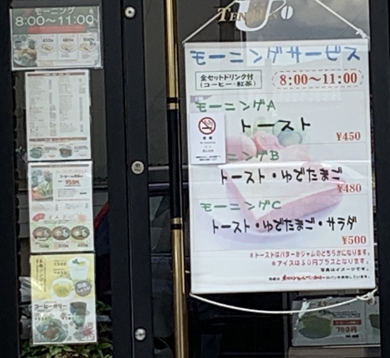 朝8:00からやっていて 11:00まで モーニングサービス メニューがあります。