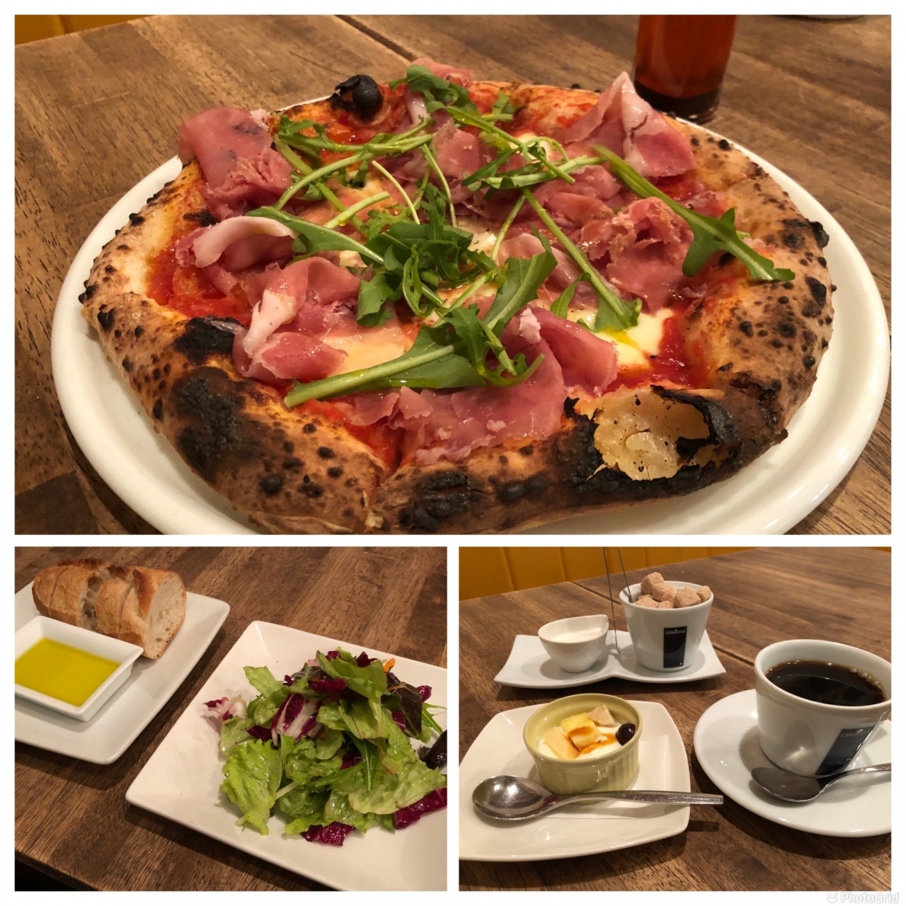 この時のランチメニューは、アラカルト+400円でランチコース、というものでした。私は生ハムとモッツァレラチーズのピザをいただきました。特にこの生地が好みです。