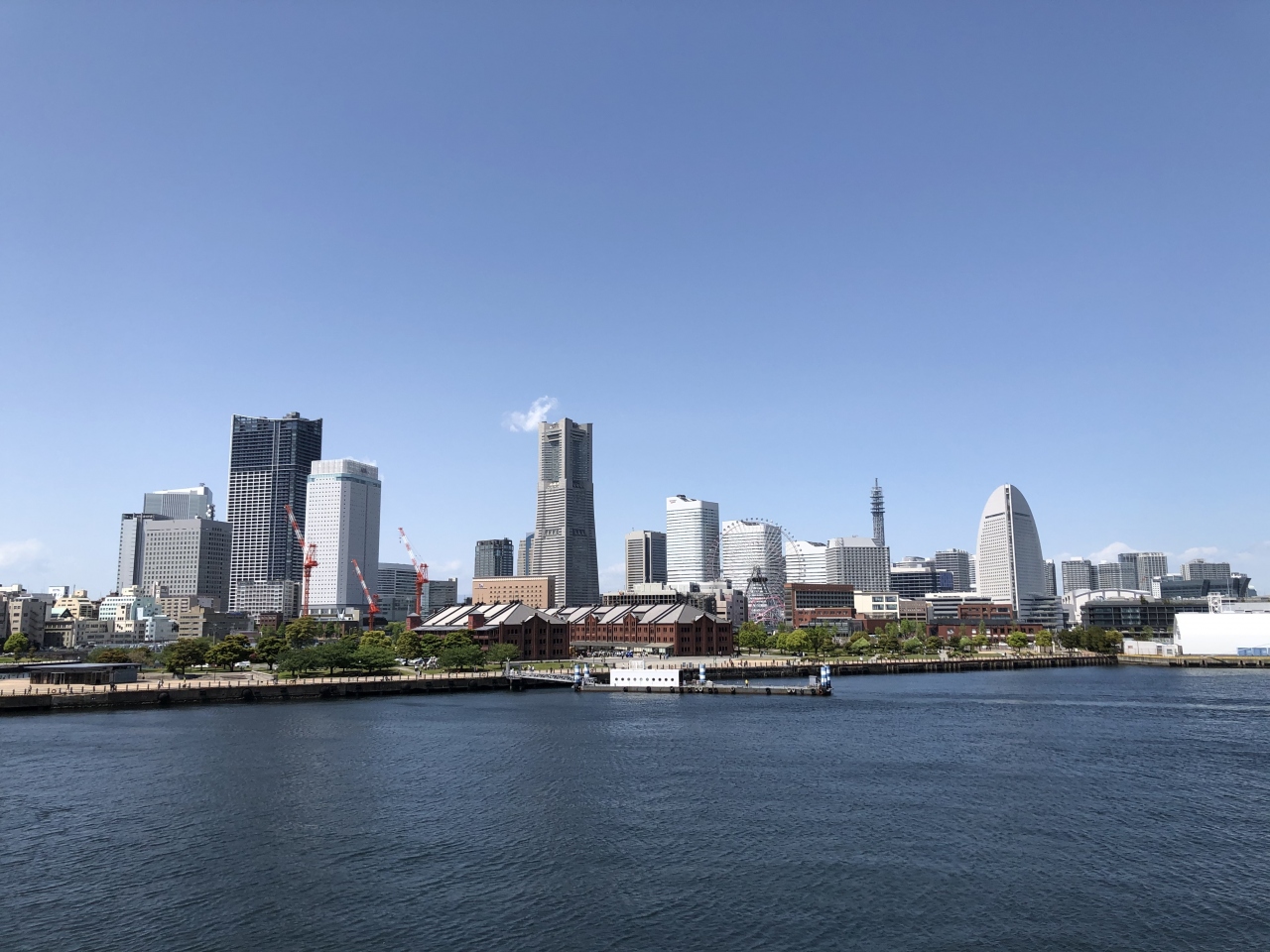 「みなとみらい21」で一番の絶景ポイントは、象の鼻防波堤のあたり。海に突き出た場所なので周囲の見通しが良いところ。対岸の赤レンガ倉庫や、その奥に見えるランドマークタワーなどの高層ビル群、そして横浜三塔のうちのキングとジャックを、ぐるりと見渡すことができます。