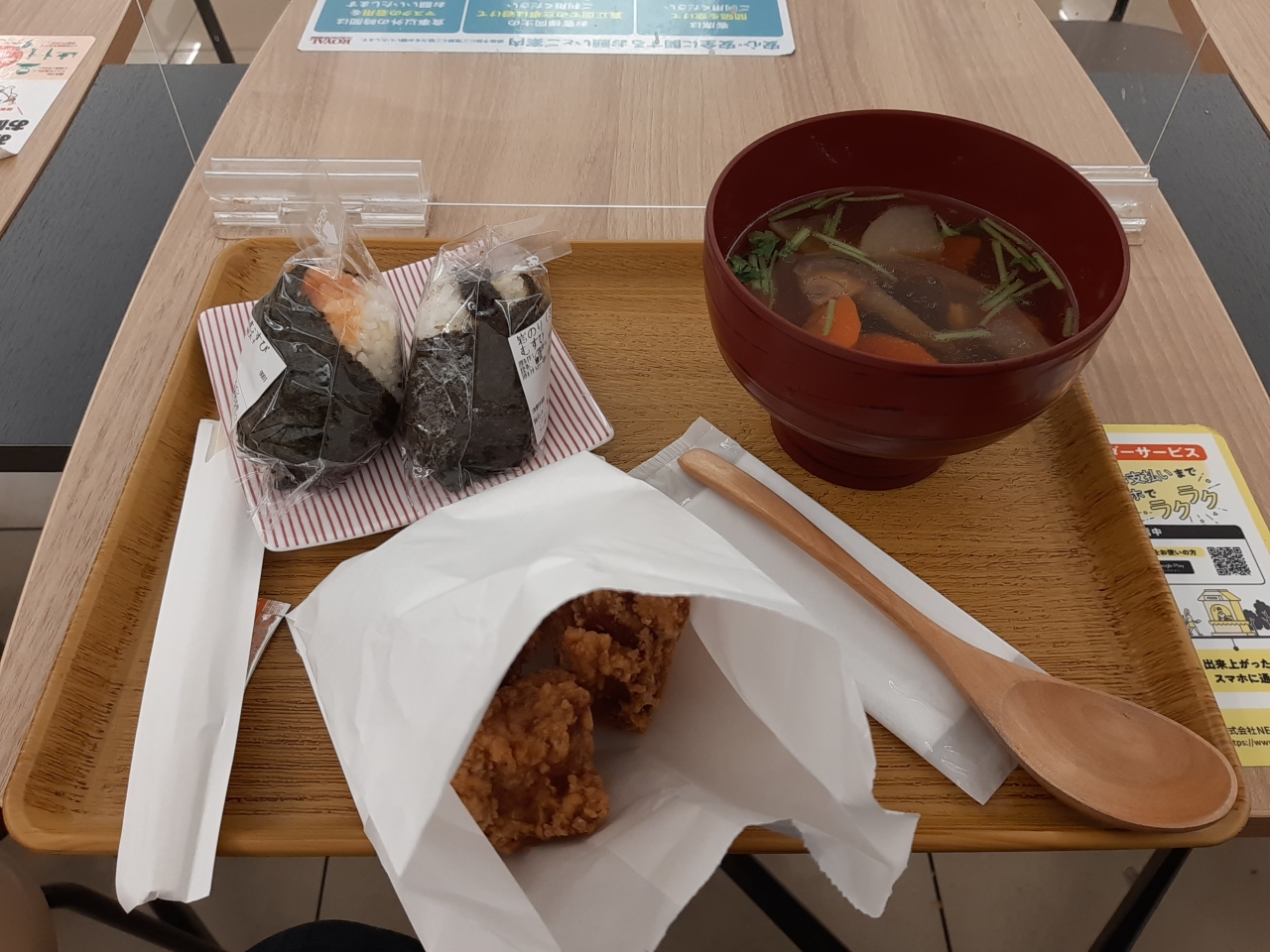 夜8時も回っており、軽く食べられればOKと思っていた自分の目に入ってきたのが、おにぎり2個とけんちん汁のセット。