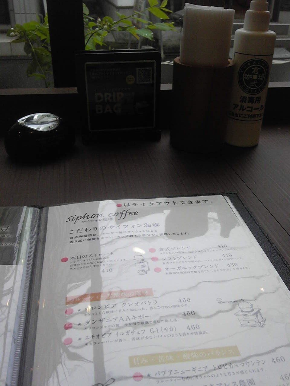 サイフォンで入れた本格的なコーヒーが500円以下で楽しめるし、何よりテーブルが広いのがよいです。