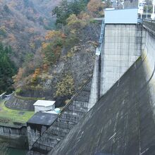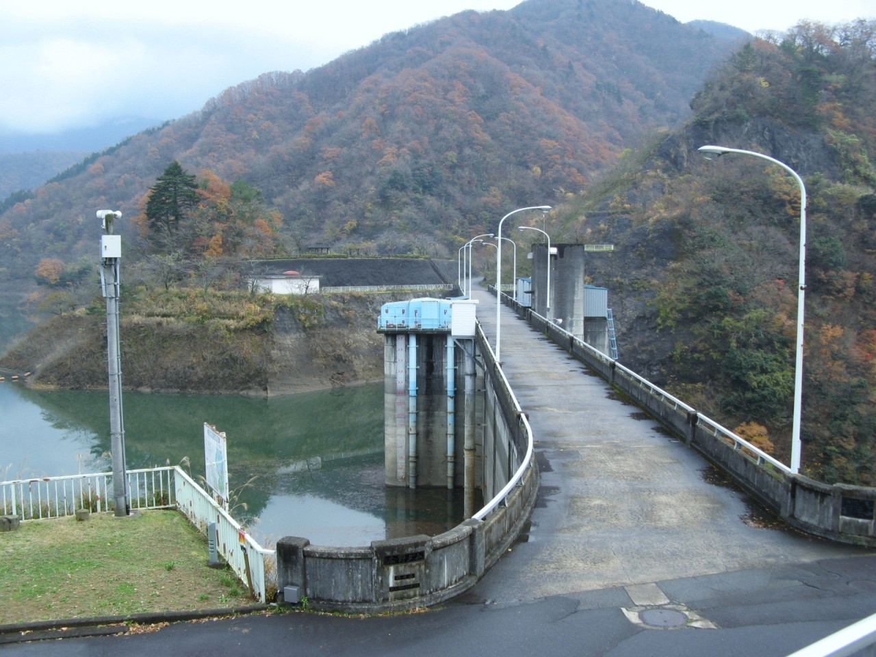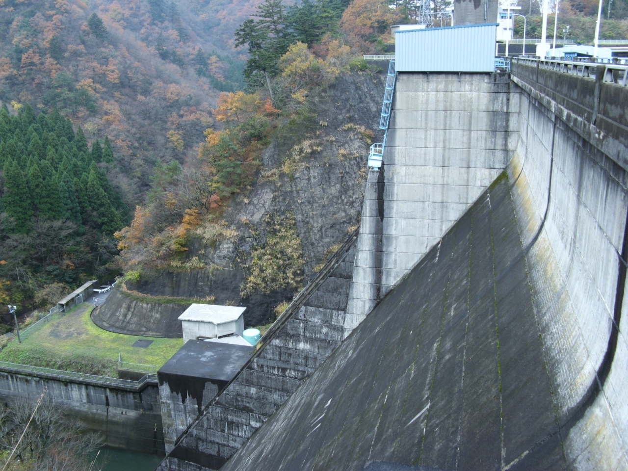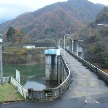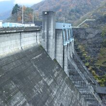 竣工が1967年と比較的古く、どっしりしたダムは貫禄十分。ダム堤体上は車の通行が可能ですが、高さがそれほどでもないので下流側を見てもそれほど迫力は感じませんでした。また、ダムの直下は立入禁止で堤体を正面から見上げることはできないのが残念でした。